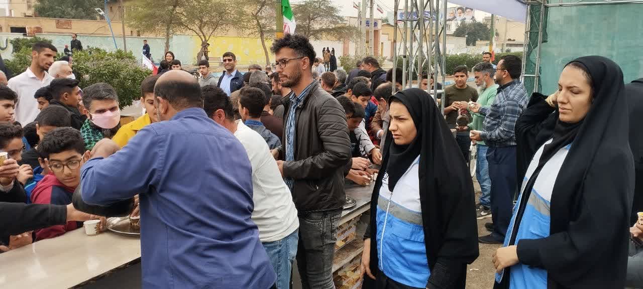 حضور کارشناسان سلامت محیط مرکز بهداشت شهرستان بندرماهشهر در مراسم راهپیمایی پرشکوه یوم الله ۲۲ بهمن ۱۴۰۲ و نظارت بر توزیع (چای، شربت)، کلرسنجی و نمونه برداری میکروبی آب در شهرستان بندر ماهشهر و بندر امام خمینی (ره)