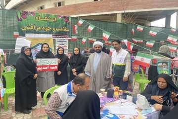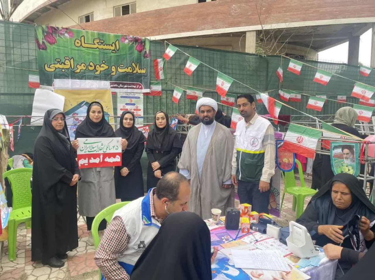 برپایی ایستگاه سلامت شهرستان بندرماهشهر در مسیر راهپیمایی یوم الله ۲۲ بهمن ماه ۱۴۰۲ توسط کارشناسان واحد‌های ستاد مرکز بهداشت و ارائه خدمات بهداشتی از جمله اندازه گیری قندخون، فشار خون، توزیع مکمل ها و بسته های آموزشی