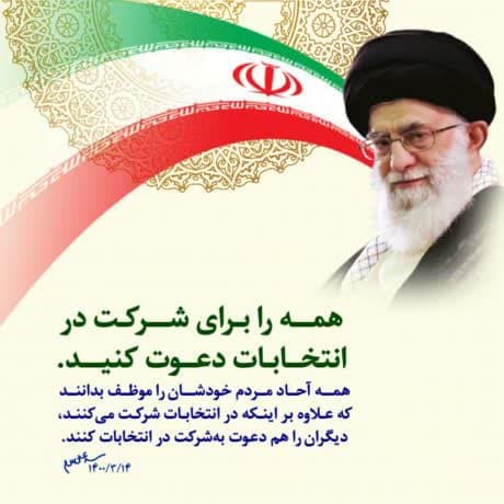 در این برهه از زمان که تمامی دشمنان شرق و غرب با تبلیغات سوء، مردم ایران را از حضور در انتخابات منع می کنند، باید گوش به فرمان ولی فقیه، طبق وظیفه سیاسی و اجتماعی در این میدان جنگ وارد شویم و با ناکام گذاشتن دشمنان، پشتیبانی و همراهی خود را از انقلاب و رهبری فرزانه اعلام کنیم.